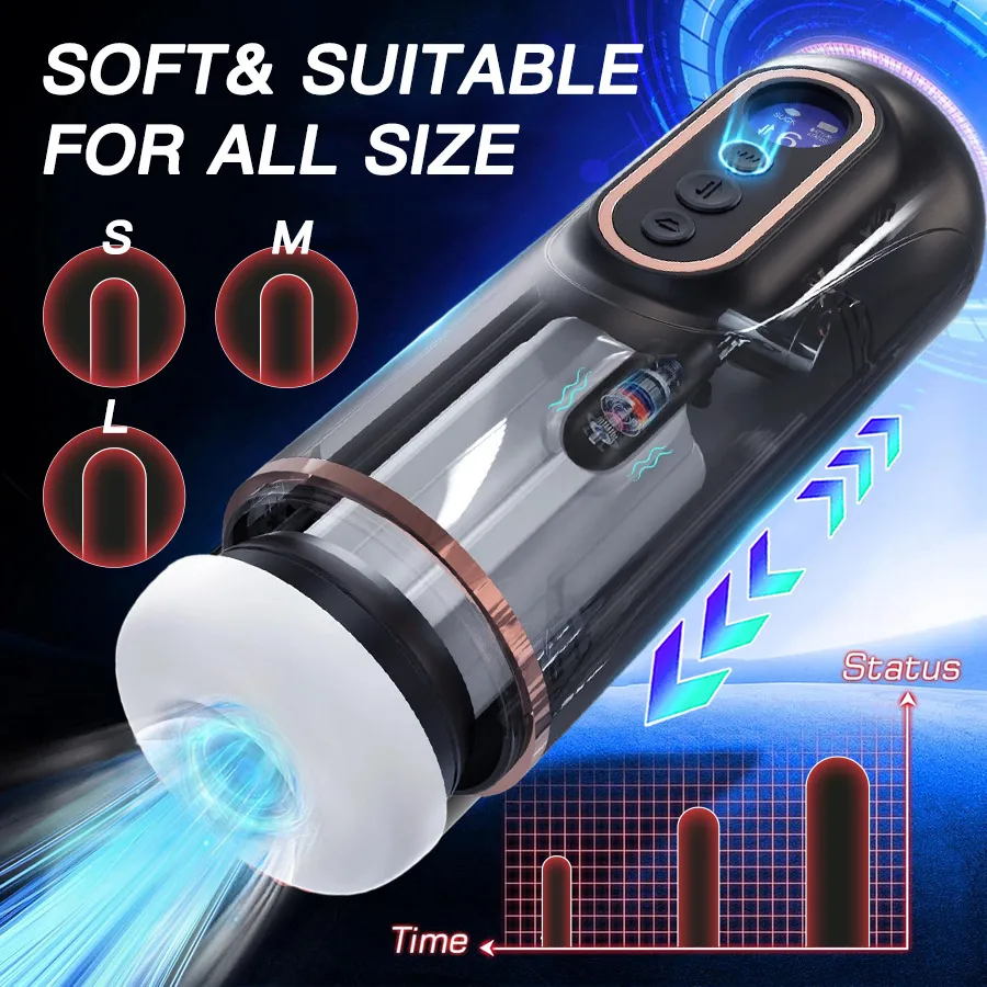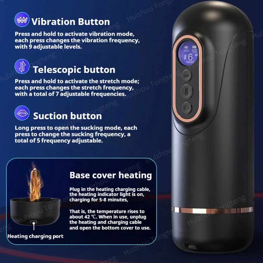 Erlebe intensives Solo-Vergnügen mit diesem beheizbaren männlichen Masturbator. Mit 3D-strukturiertem Innenkanal, Saug- und Stoßfunktion für ein realistisches Gefühl – das perfekte Herren-Sexspielzeug für unterwegs.